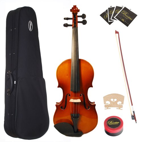 Affordably priced, the Barcelona Beginner Series Violin is ideal for beginners of the instrument. Made of hand-carved solid maple with a spruce top, the violin has an eye-catching gloss finish that protects the instrument from scratches and surface wear. Moreover, it comes with everything you need to start playing today -- bow, rosin, bridge, and extra strings -- along with a lightweight, plush-li